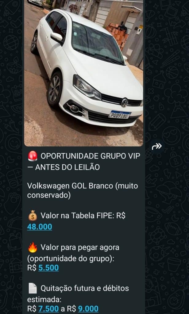 👆 Exemplo real de oferta recebida no grupo